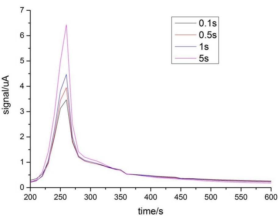 图3.2样品在0.1s,0.5s,1s,5s延时下的信号曲线