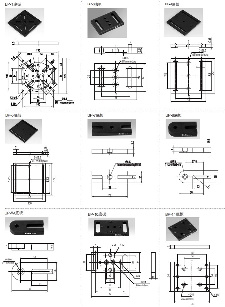 为了适应各种调整架的组合使用或便于将调整架安装固定于工作台面上,卓立汉光提供多种规格的底板。经过精加工的底板精致耐
