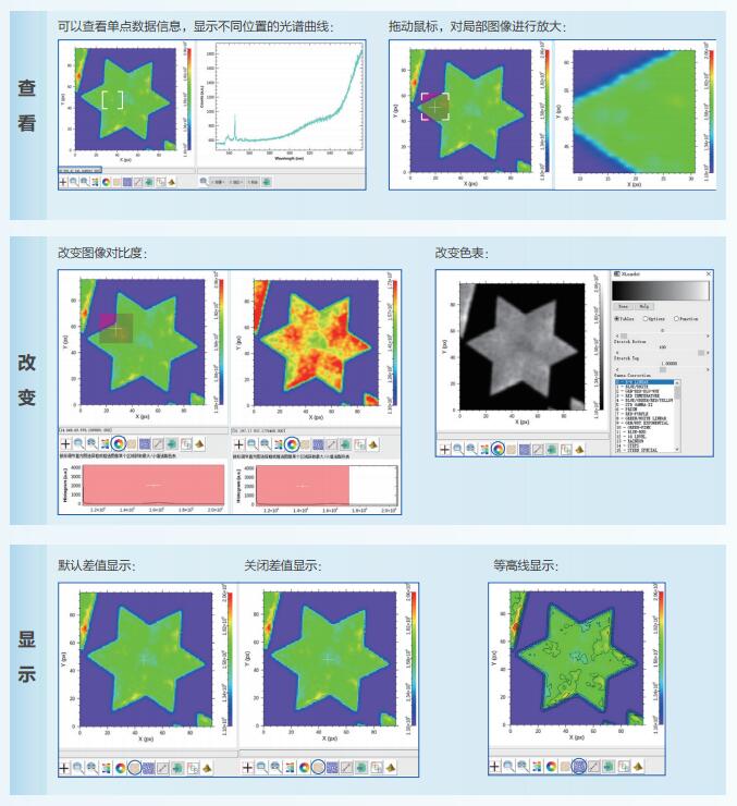 具有强大的数据分析软件,可以对 Mapping 数据进行去基线、平滑等预处理,之后根据需求可以通过信号强度的 积分、平均值、*大值等模式进行成像;此外,还可以对单峰及多峰进行数据拟合。对于输出的图像,可以进行 色表匹配等美化处理。