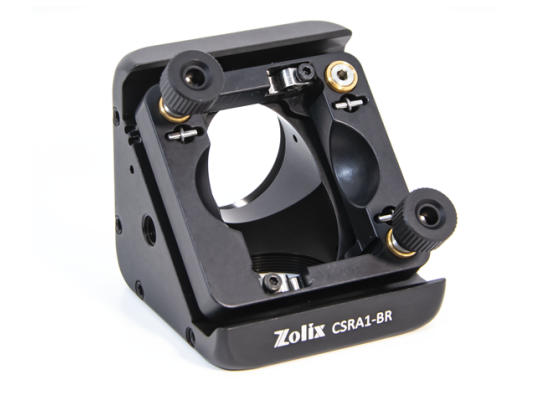 ZOLIX提供的45度安装调整架兼容30mm笼式系统,适用于45°光轴入射的Ø25.4mm光学元件,采用卡环式无损固定;其挠性锁紧机构支持笼杆快拆安装,模块化镜片安装座(独立选配)通过胶头螺钉实现360°连续旋转调节,旋松时自由定位、锁紧后三点压力均衡固定,配合镜座边缘2°分度游标满足偏振器件角度精确校准等需求。