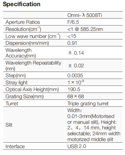 The triple monochromator is consisted of three image calibration monochromators by fine adjustments. The first two monochromators connected in subtractive dispersion mode to reduce stray light; the last two monochromators connected in additive dispersion mode to improve the resolution. The triple spectrometer is flexible for use in single, double and triple monochromator operation. Thanks to its tunable wavelength and adjustable notch, the triple spectrometer is mainly used for high-end Raman spectrum measurements, such as ultraviolet excitation Raman spectrum and low wavenumber Raman spectrum.