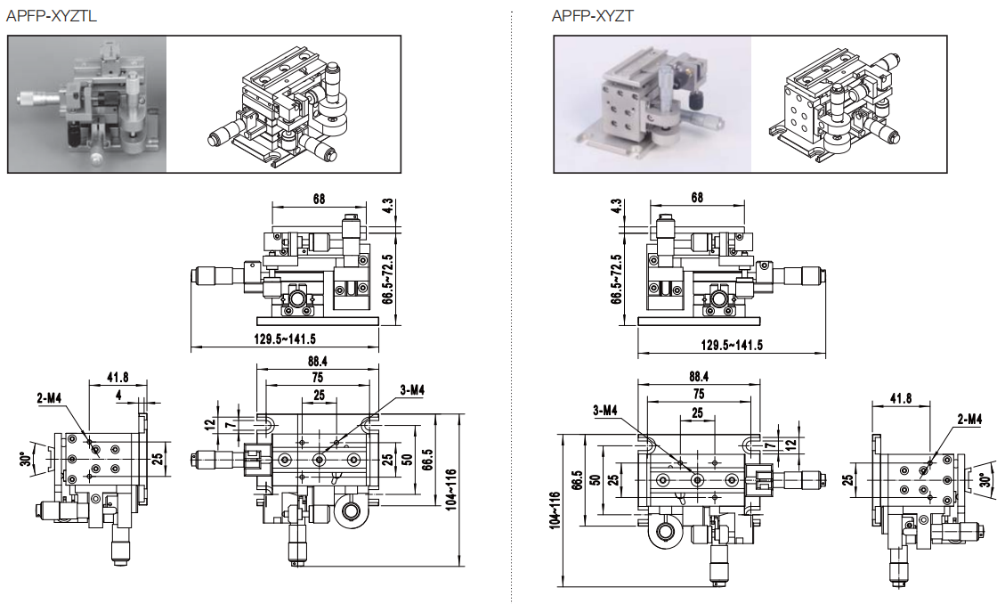 Precision Fiber Alignment Stage, 12mm XY, 6mm Z.θy,θz: ±3° Micrometers