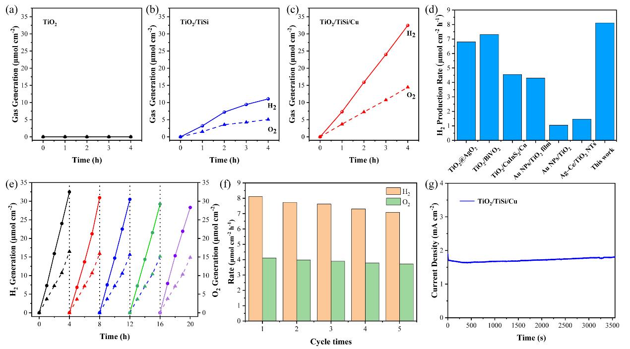 Figure 1. TiO2/TiSi/Cu光阳极的制备方法、晶相和界面.