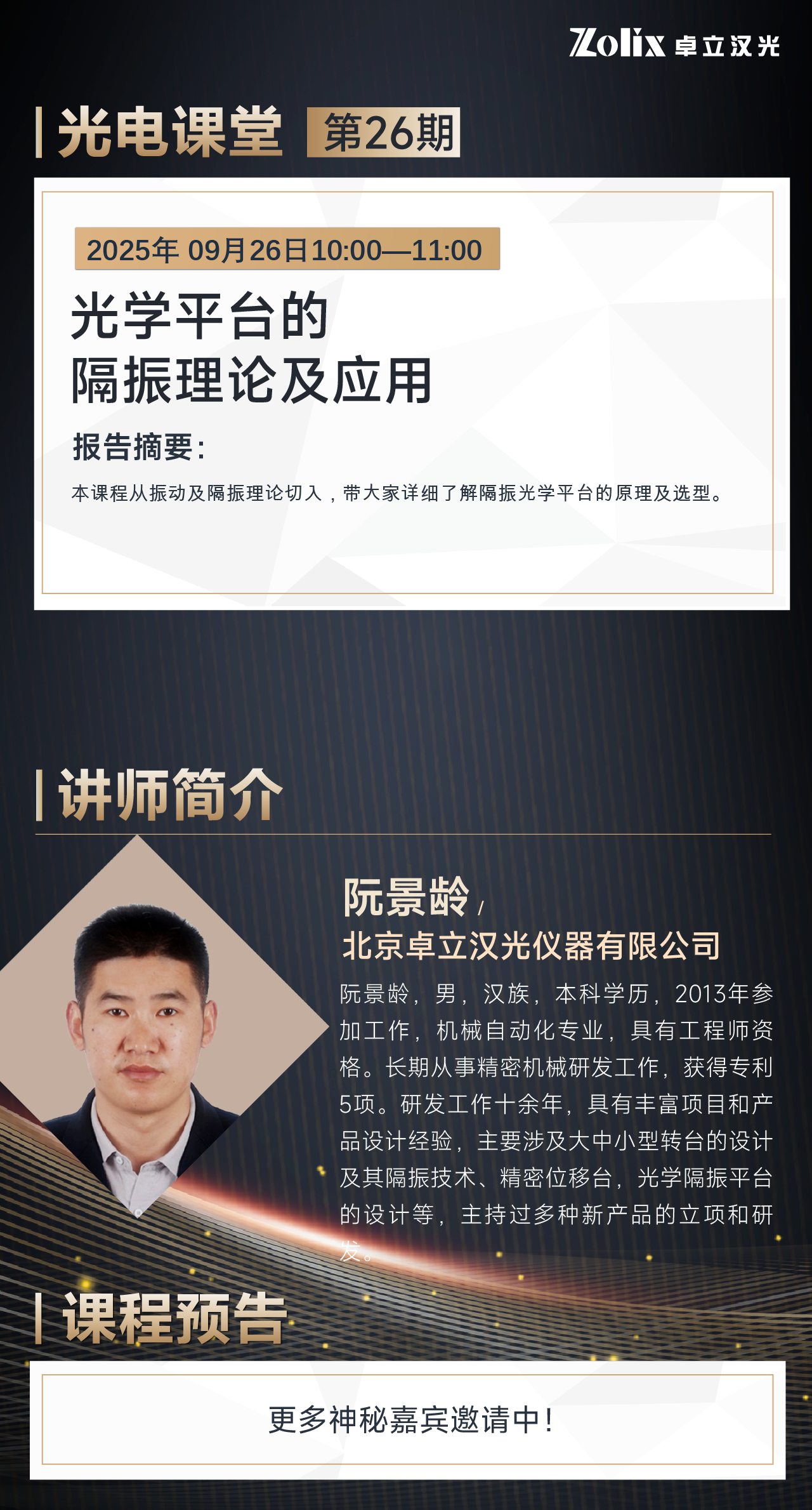 本课程从振动及隔振理论切入,带大家详细了解隔振光学平台的原理及选型。