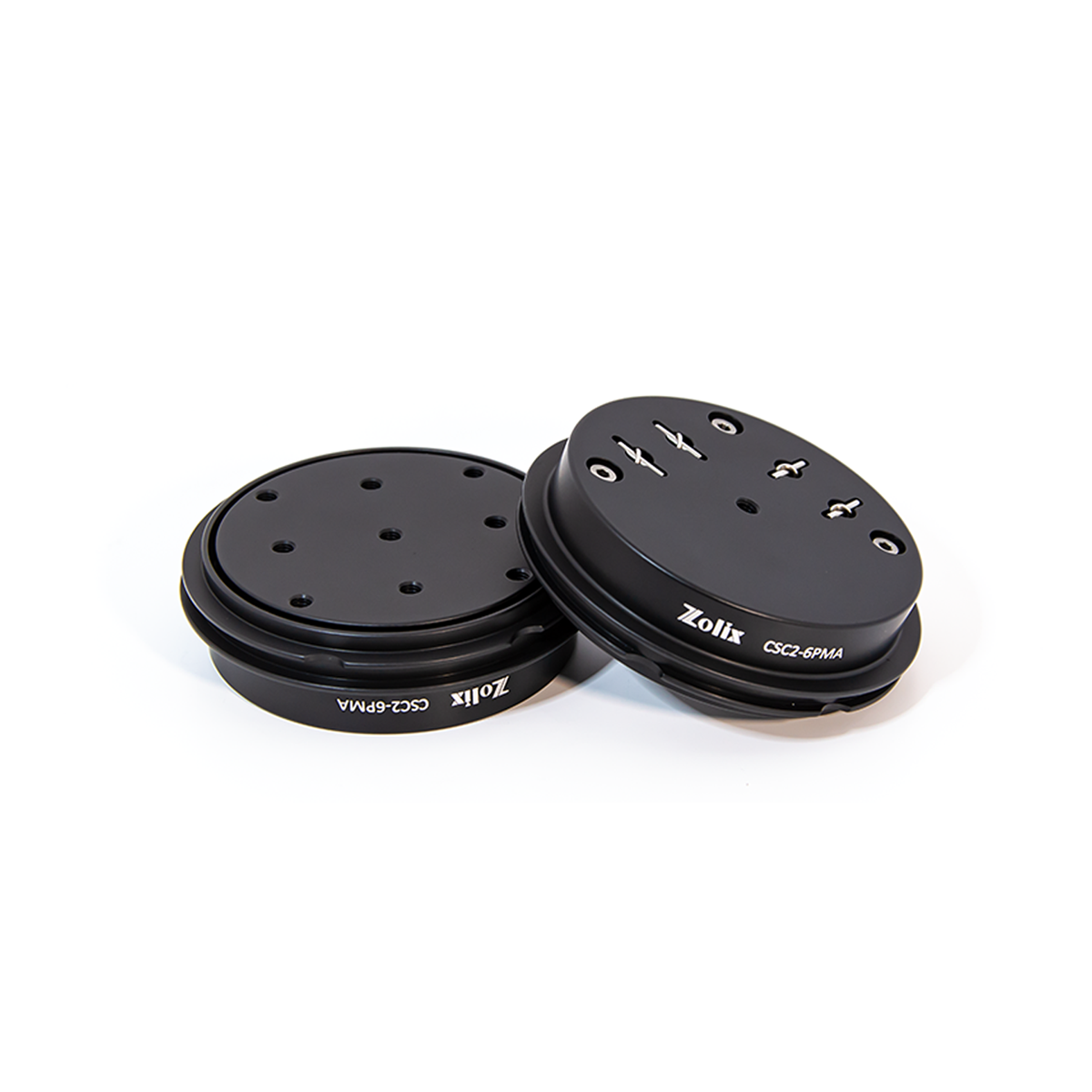 ZOLIX提供的圆片夹持座适用于直径50.8mm光学元件,光学元件最大安装厚度有6.3mm和12.3mm可选,其中CSC2-6TC光学元件最大安装厚度为6.3mm,CSC2-6TCT光学元件最大安装厚度为12.3mm。光学元件固定方式均为单卡环固定。圆片夹持座也可兼容CSC2-6PM和CSC2-6PMA安装平台使用,也可用于自由空间中。