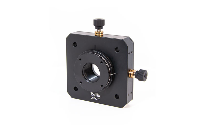 ZOLIX提供的XY位移调整架兼容60mm笼式系统使用。其调节器提供0.25mm/转的调节精度,通过调节器可实现XY方向±2mm行程位移。笼杆连接通孔处各配有一个位于侧面的锁紧固定螺丝,可使用1.5 mm六角扳手紧固调整架,调整架底部带有M6螺纹孔,可用于安装接杆。