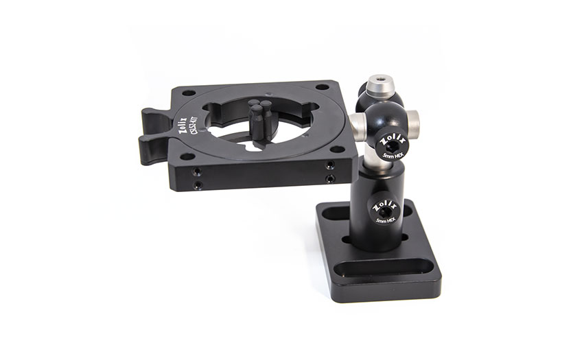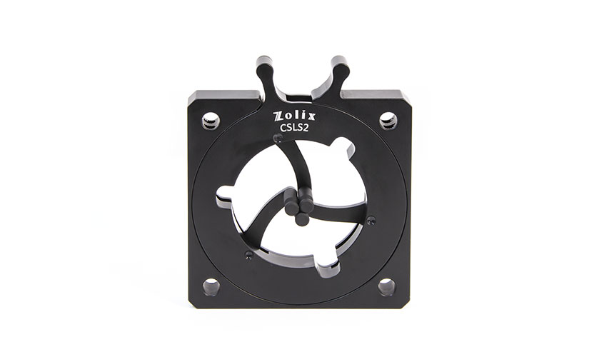 ZOLIX提供的安装座兼容60mm笼式系统,用于安装直径范围在3.8 mm-46 mm的光学元件。通过三个弹簧式夹臂固定光学元件 ,夹臂可通过单手进行操作。笼杆连接通孔处各配有一个位于侧面的锁紧固定螺丝,可使用1.5 mm六角扳手紧固安装座。安装座底部带有一个M4螺纹孔用于连接接杆,自定心透镜安装座兼容笼式系统和自由空间。